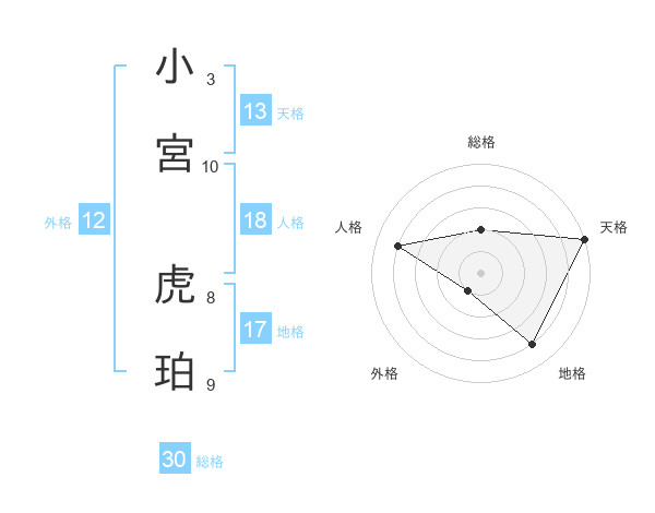 小宮 虎珀さんの総格は30画の2点!