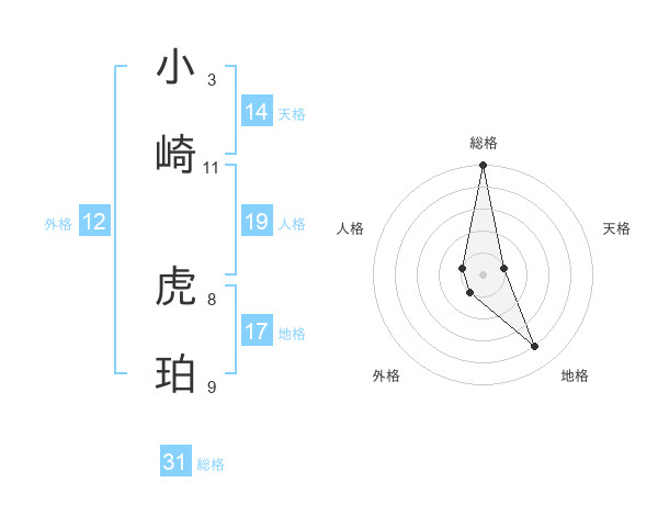 小崎 虎珀さんを姓名の画数から五運を鑑定