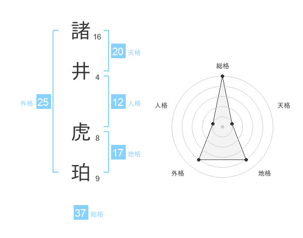 諸井 虎珀さんの総格は37画の5点!