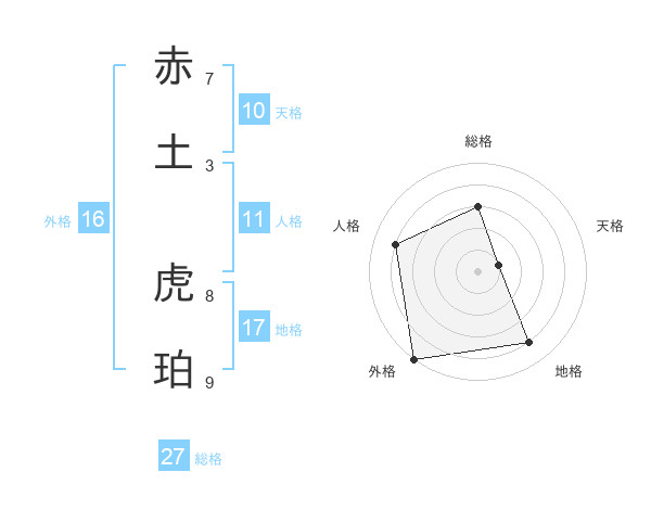 赤土 虎珀さんを姓名の画数から五運を鑑定