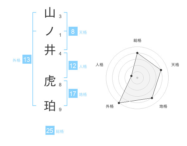 山ノ井 虎珀さんを姓名の画数から五運を鑑定
