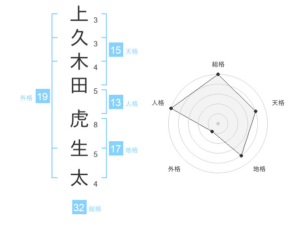 上久木田 虎生太さんを姓名の画数から五運を鑑定