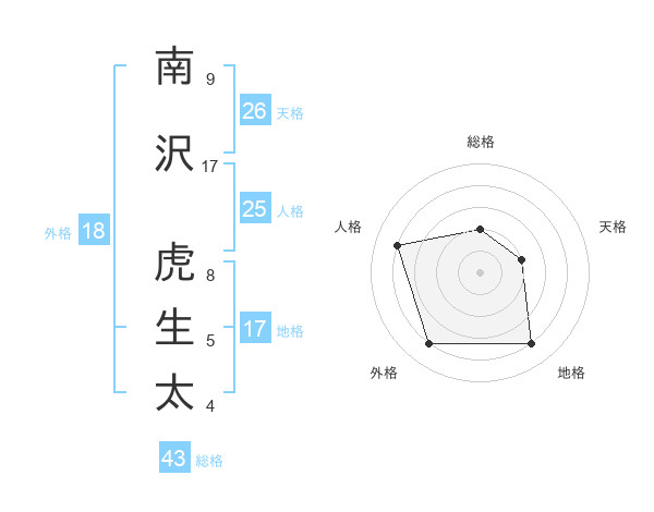 南沢 虎生太さんを姓名の画数から五運を鑑定