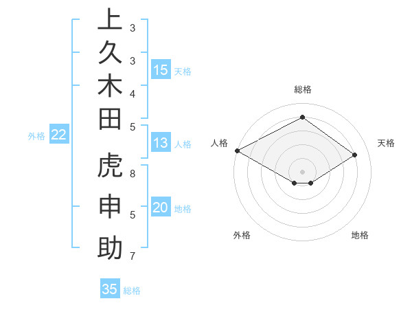 上久木田 虎申助さんを姓名の画数から五運を鑑定