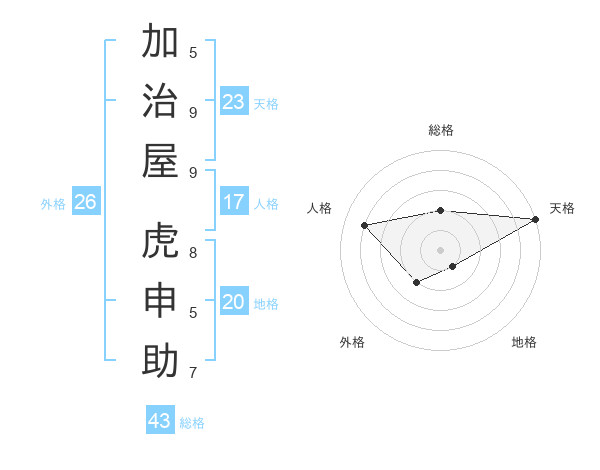 加治屋 虎申助さんの総格は43画の2点!