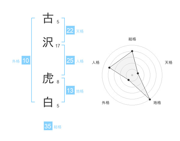 古沢 虎白さんを姓名の画数から五運を鑑定