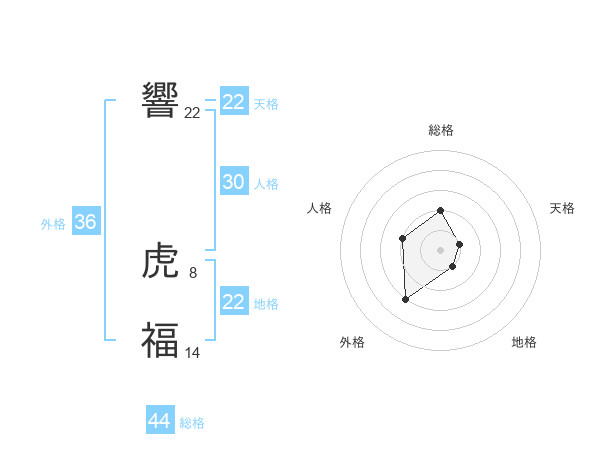 響 虎福さんの総格は44画の2点!