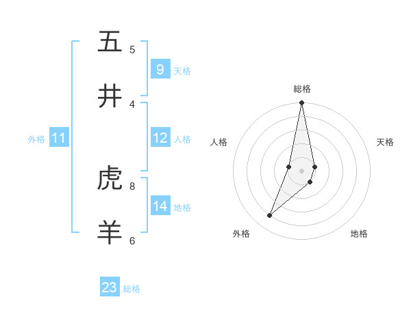 五井 虎羊さんを姓名の画数から五運を鑑定
