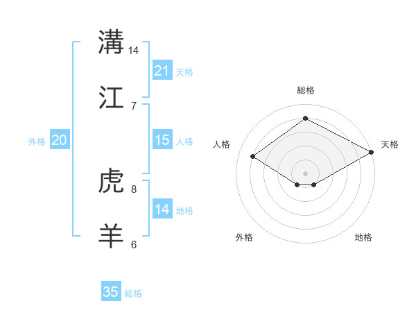 溝江 虎羊さんの総格は35画の4点!
