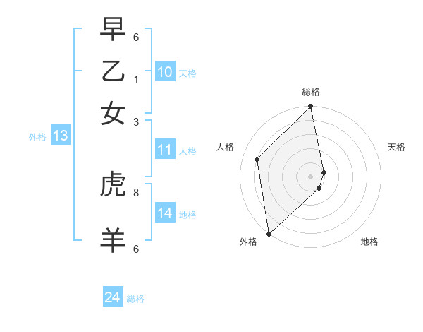 早乙女 虎羊さんを姓名の画数から五運を鑑定
