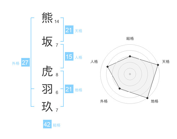 熊坂 虎羽玖さんの地格は21画の5点!