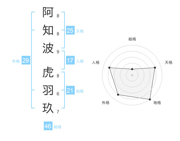 阿知波 虎羽玖さんを姓名の画数から五運を鑑定