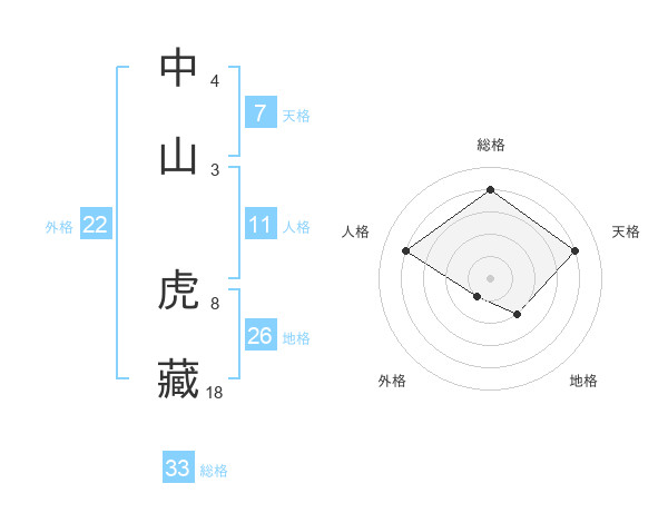 中山 虎藏さんを姓名の画数から五運を鑑定