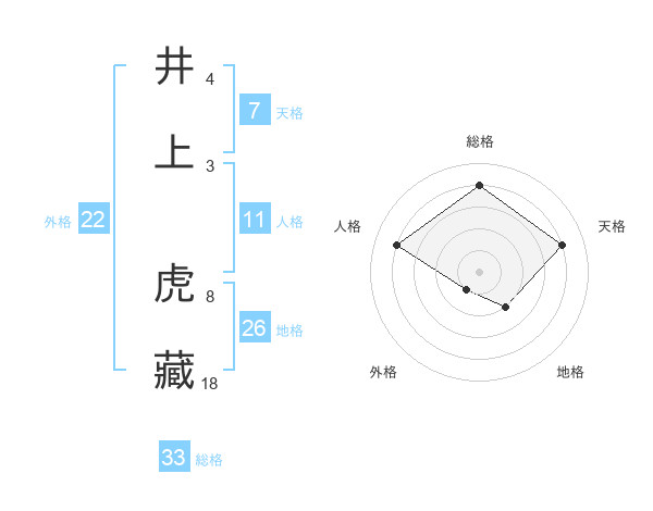 井上 虎藏さんの総格は33画の4点!