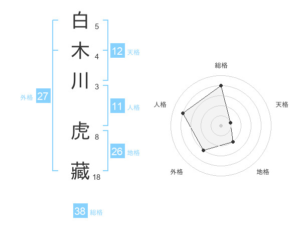 白木川 虎藏さんの総格は38画の4点!