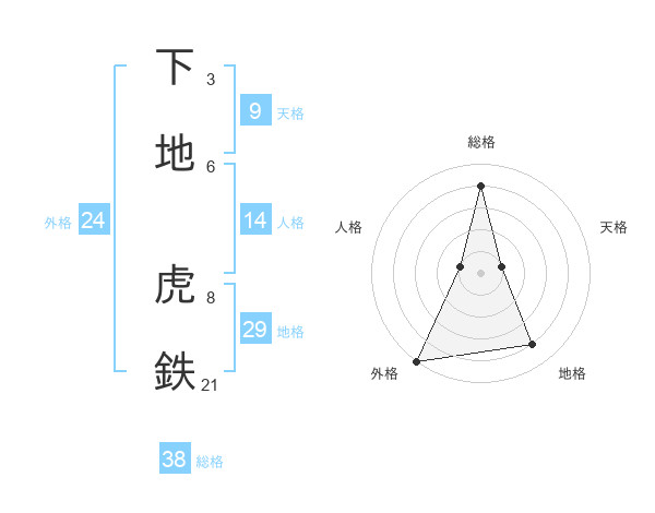 下地 虎鉄さんを姓名の画数から五運を鑑定