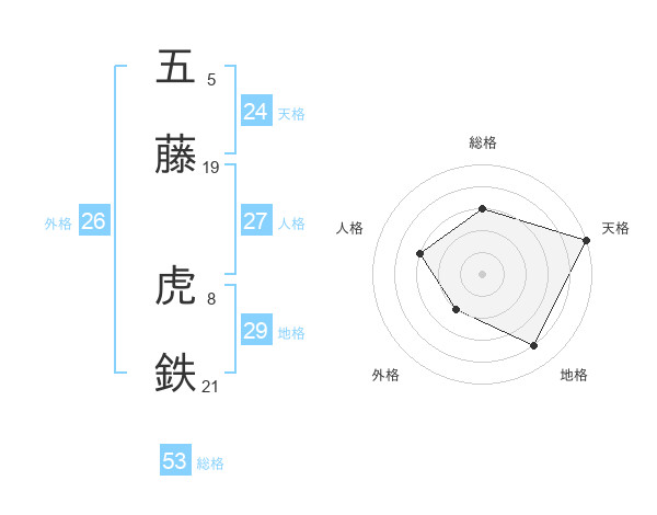 五藤 虎鉄さんの総格は53画の3点!