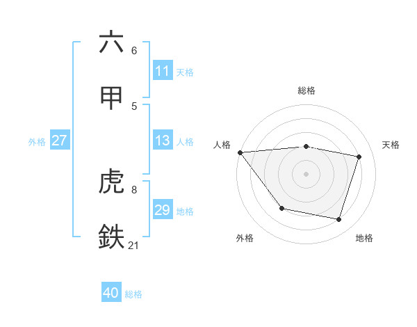 六甲 虎鉄さんの総格は40画の2点!