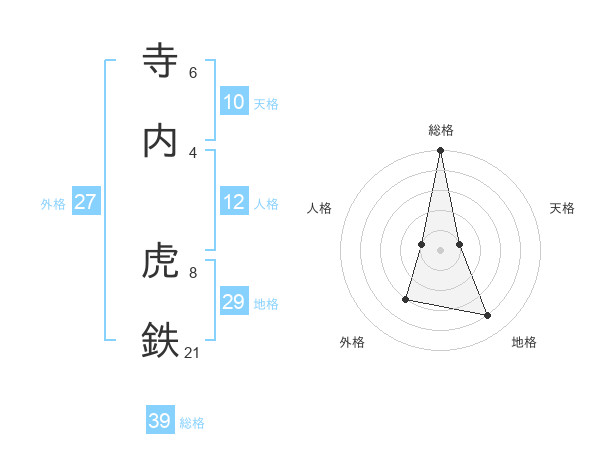 寺内 虎鉄さんを姓名の画数から五運を鑑定