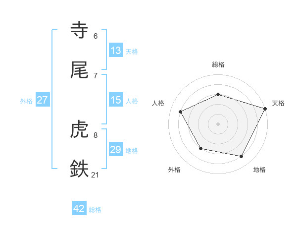 寺尾 虎鉄さんを姓名の画数から五運を鑑定