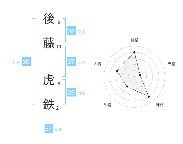 後藤 虎鉄さんの外格は30画の2点!