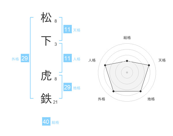 松下 虎鉄さんを姓名の画数から五運を鑑定
