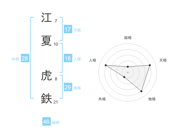 江夏 虎鉄さんを姓名の画数から五運を鑑定