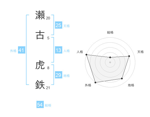 瀬古 虎鉄さんの天格は25画の4点!