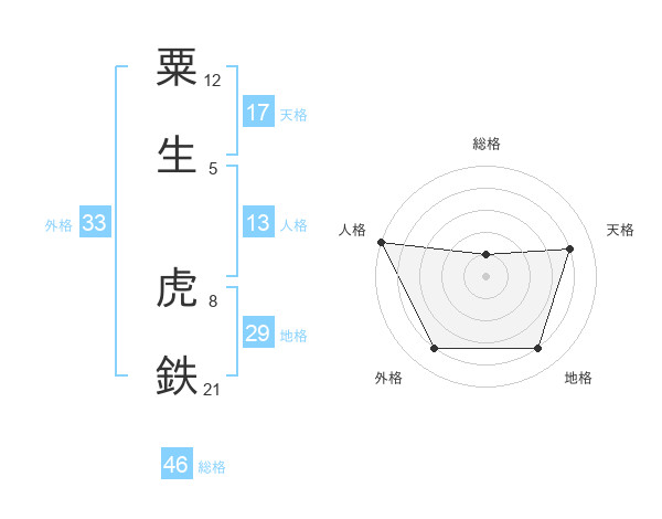 粟生 虎鉄さんを姓名の画数から五運を鑑定