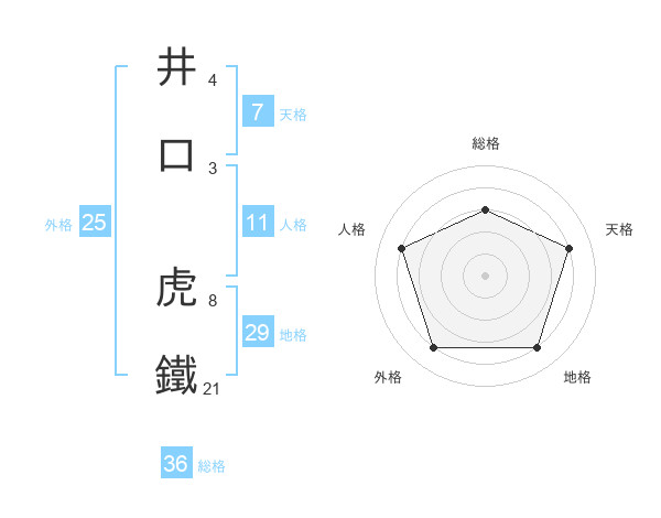 井口 虎鐵さんの人格は11画の4点!