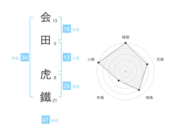 会田 虎鐵さんを姓名の画数から五運を鑑定