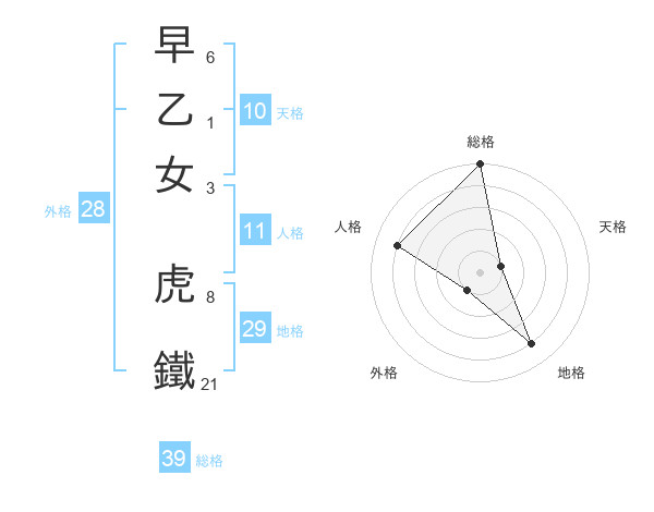 本サイトの鑑定結果の正当性は保証しません。鑑定結果は参考程度にお読みください。実際の名づけにご利用される場合は、姓名判断についてご自身でよくお調べください。