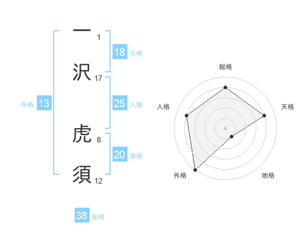 一沢 虎須さんの総格は38画の4点!