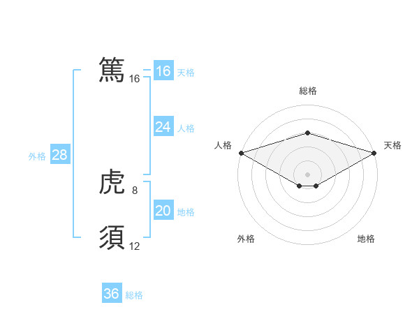 篤 虎須さんの天格は16画の5点!