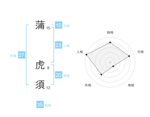 蒲 虎須さんを姓名の画数から五運を鑑定