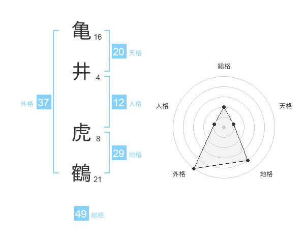 亀井 虎鶴さんの外格は37画の5点!