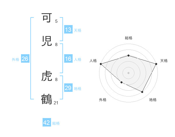 可児 虎鶴さんを姓名の画数から五運を鑑定