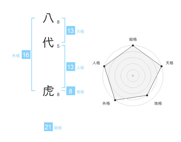 八代 虎さんの総格は21画の5点!