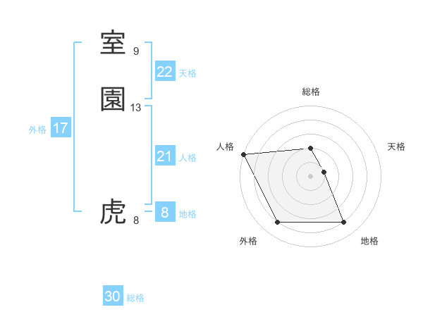 室園 虎さんを姓名の画数から五運を鑑定
