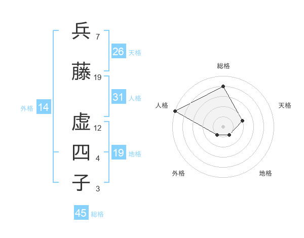 兵藤 虚四子さんの総格は45画の4点!