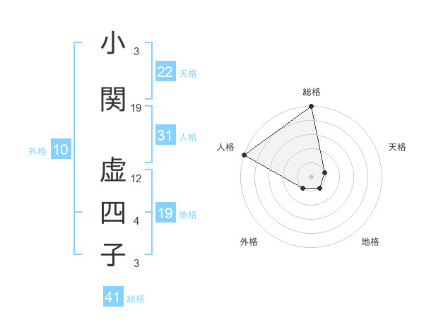 小関 虚四子さんを姓名の画数から五運を鑑定
