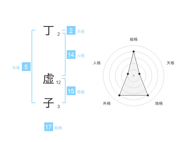 丁 虚子さんの総格は17画の4点!