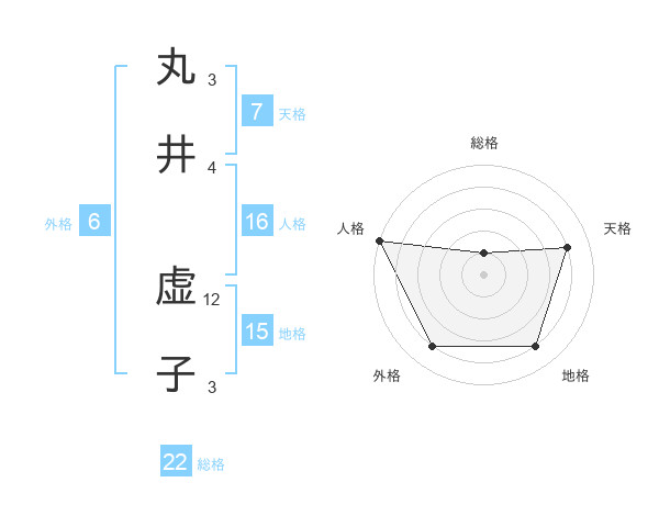 丸井 虚子さんを姓名の画数から五運を鑑定