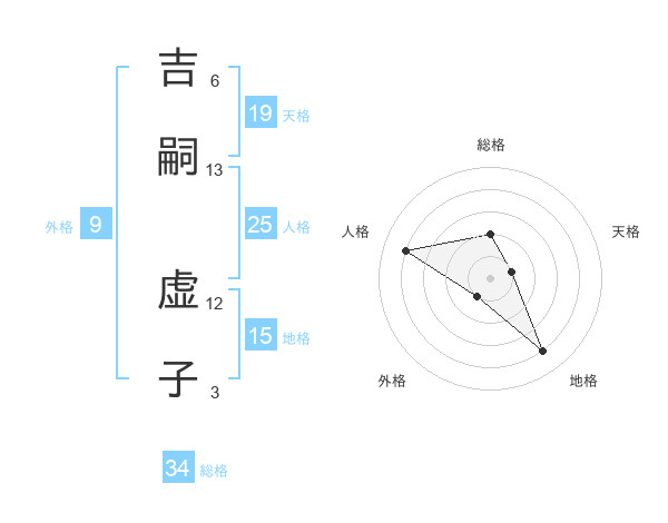 吉嗣 虚子さんの総格は34画の2点!