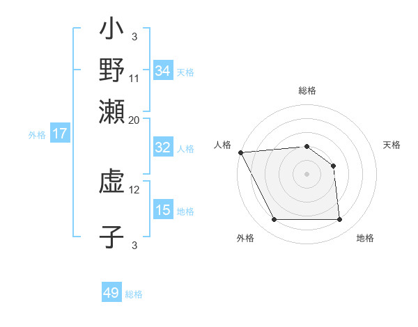 小野瀬 虚子さんを姓名の画数から五運を鑑定