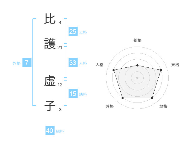 比護 虚子さんの外格は7画の4点!