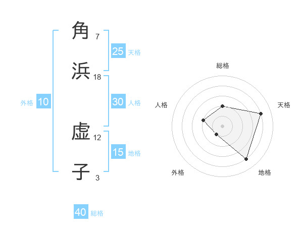 角浜 虚子さんの天格は25画の4点!
