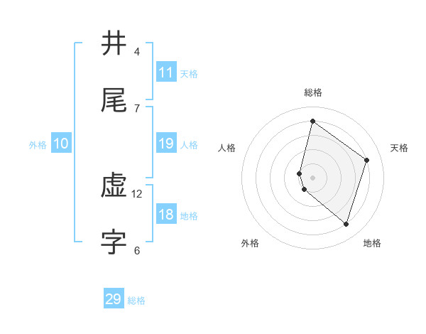 井尾 虚字さんの総格は29画の4点!