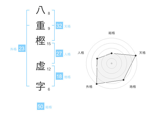 八重樫 虚字さんを姓名の画数から五運を鑑定
