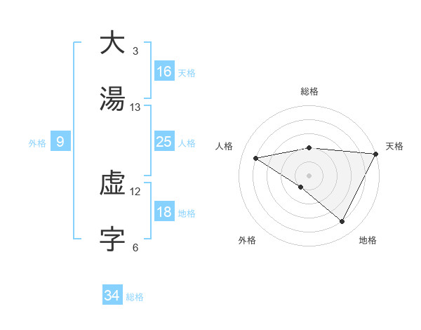 大湯 虚字さんの総格は34画の2点!